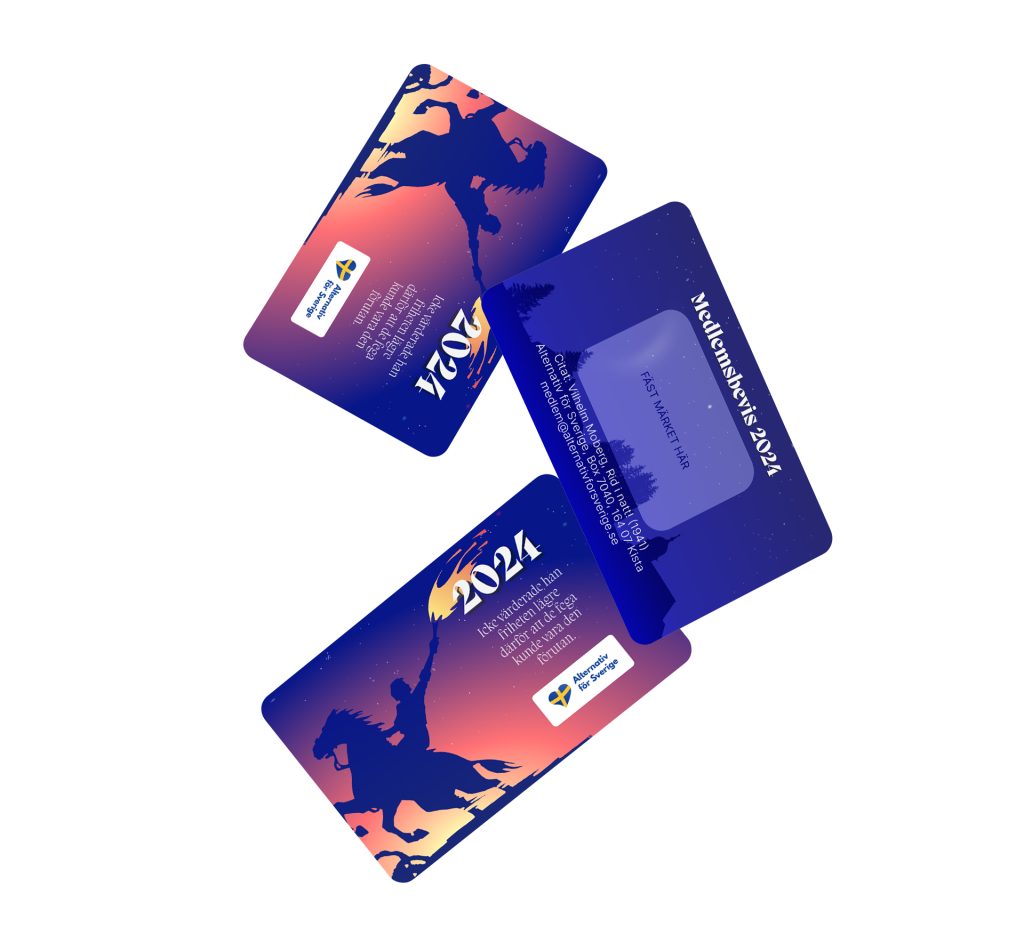 Årets medlemskort har ett kraftigt självständighetstema. Det anknyter både till nästa års EU-val, där Alternativ för Sverige är det enda partiet för svenskt oberoende genom ett EU-utträde – en Swexit!