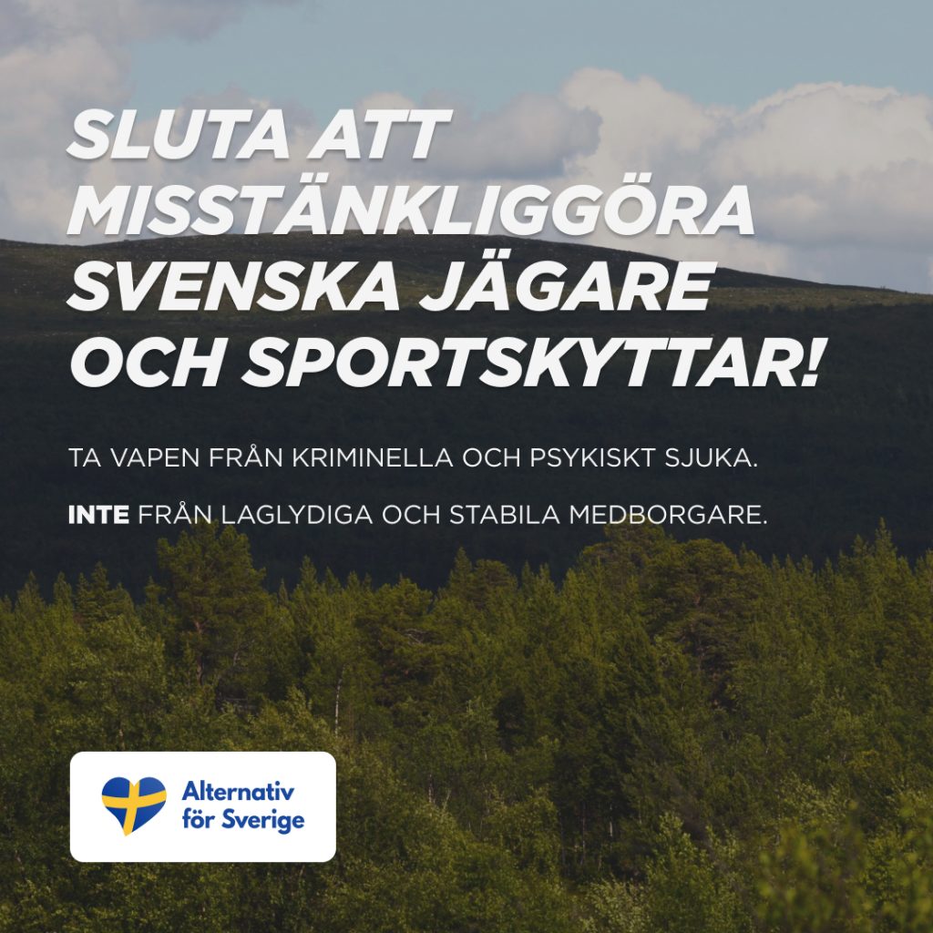 Med anledning av detta vill Alternativ för Sverige här understryka att vi står upp för svenska jägare och sportskyttar. Vi är emot Tidöpartiernas planer. Många av våra företrädare och väljare är själva engagerade i jakt och skytte.
