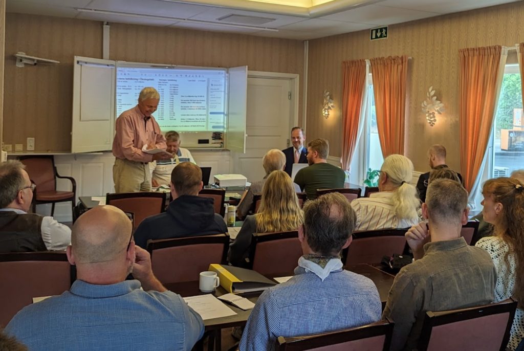 Efter en gemensam lunch samlades deltagarna för mötesförhandlingar, som leddes av partiledare Gustav Kasselstrand.