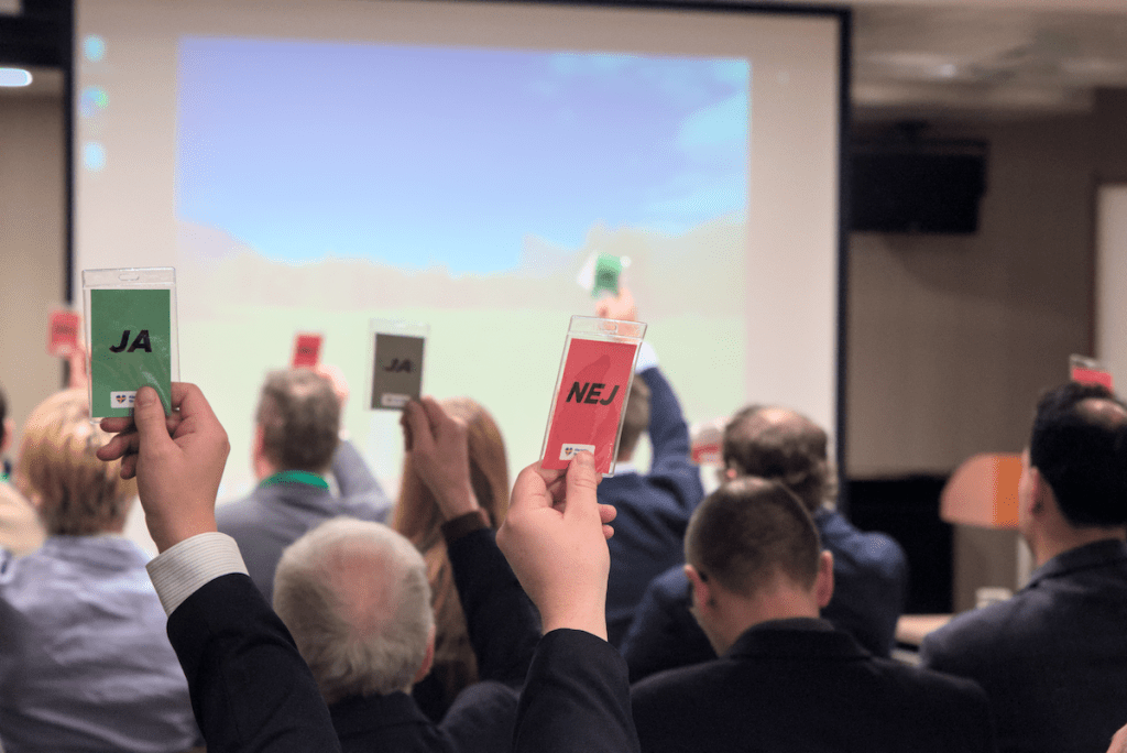 Debatten kring motionerna gick varm, och fler än en gång behövde röstkorten användas!