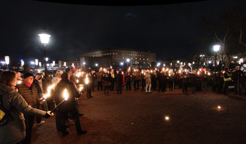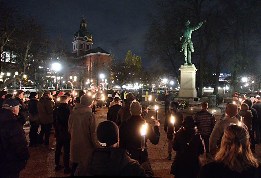 Onsdag den 30 november anordnade Alternativ för Sverige ett torgmöte vid Karl XII:s staty i Kungsträdgården i Stockholm. Huvudparollen var “Stoppa folkutbytet – Återvandring nu!”. Läs mer om bakgrunden till torgmötet här.