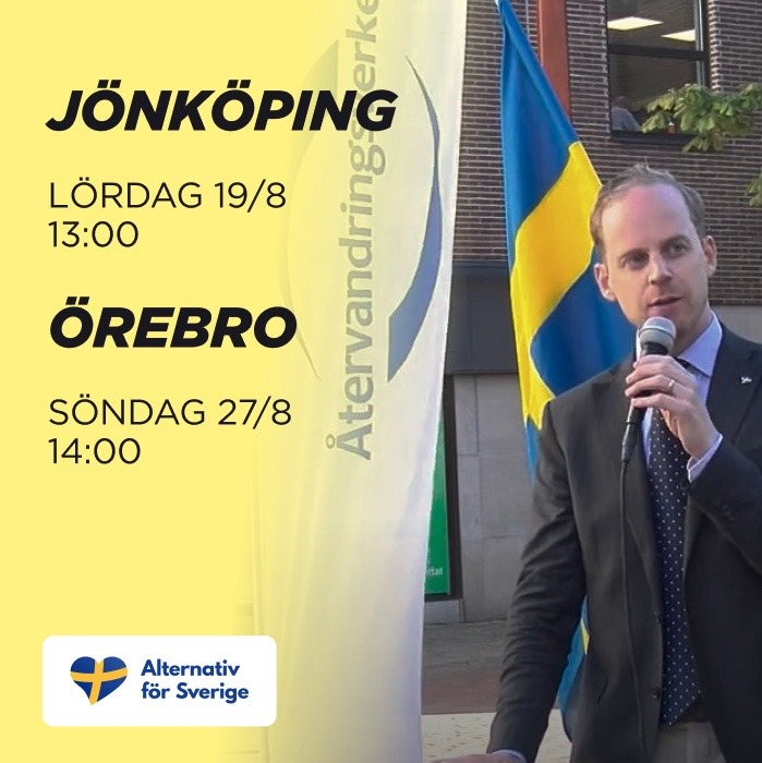 – Med våra torgmöten visar vi att vi ständigt fortsätter vårt arbete för ett svenskt och självständigt Sverige. Alla kan se att Alternativ för Sverige inte viker en millimeter i våra kärnfrågor. Till skillnad från riksdagspartierna, är vi ett parti man kan lita på. Jag ser fram emot att komma till Jönköping och Örebro!