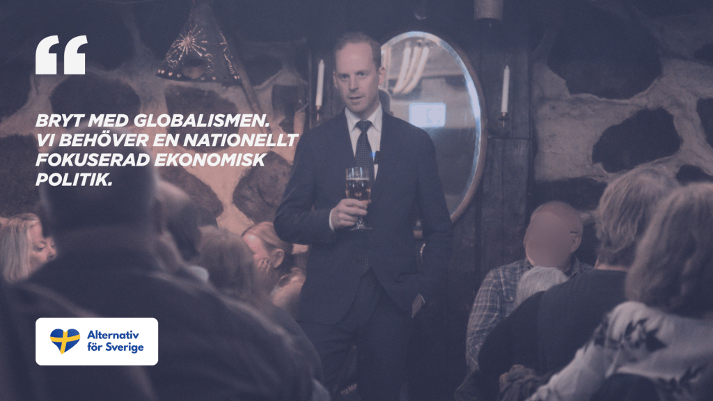Den förda ekonomiska politiken har gjort Sverige och svenskarna fattigare än på mycket länge. Som problem nämndes bland annat skyhöga skatter och en klimatpolitik som leder till en ekonomisk utarmning av medelklassen. Den offentliga sektorn med en pålitlig välfärd blev den ofantliga sektorn med byråkrati och myndighetsaktivism. Dessutom hotas hushållen nu av en extrem överbelåning som drivits på av beslut från riksdagen, riksbanken och storbankerna. Den arbetande delen av befolkningen har blivit skatte- och ränteslavar och får behålla allt mindre pengar själva.