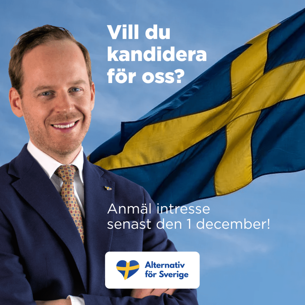 – Nu öppnar vi upp intresseanmälan för kandidatur till riksdag, regioner och kommuner. Alla som vill vara med på resan för att ta tillbaka vårt land, och som är redo att göra en konkret insats, välkomnas att anmäla sitt intresse.